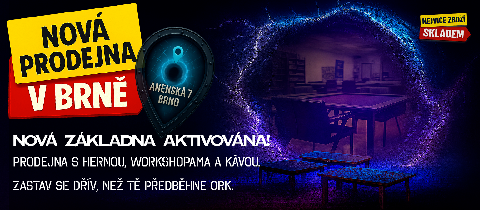 Zároveň připravujeme kamennou prodejnu, která bude k dispozici v průběhu měsíce prosince (přesné datum stanovíme později) na adrese Anenská 7 Brno. Nebude se jednat pouze o prodejnu, ale o místo, kde se bude dát zahrát jak Warhammer, tak i další deskovky a karetní hry, nebo jenom posedět u něčeho dobrého z naší nabídky.