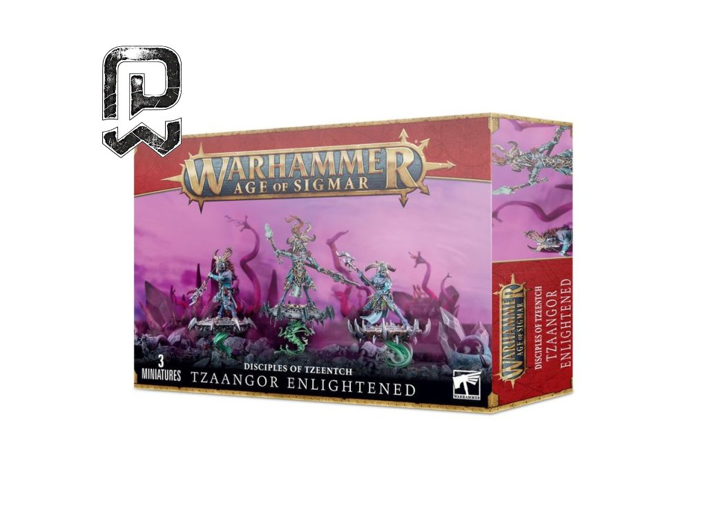 Tzaangor Enlightened jsou mutovaní válečníci, kteří se díky přízni boha změn Tzeentche stali proroky války. Jezdí na daemonských Discech, které jim poskytují extrémní mobilitu a umožňují zasáhnout nepřítele tam, kde to nejméně čeká. Jejich divinizační kopí vibrují v přítomnosti předurčené kořisti, což z nich činí ideální jednotku pro chirurgické zásahy.