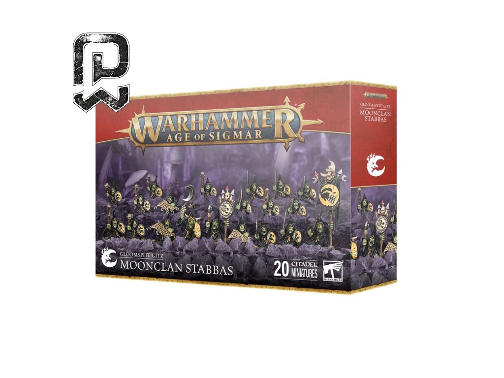 Tato sada nabízí základní jednotku pro armádu Gloomspite Gitz – Moonclan Stabbas. Ideální pro hráče, kteří chtějí zaplavit bojiště početnou hordou šílených goblinů. Skvěle se hodí k obsazování objektivů, ochraně důležitých jednotek nebo k ukrytí Loonsmasha Fanatiků. Díky možnosti sestavit alternativně jednotku Shootas získáš flexibilitu v boji na dálku i na blízko.