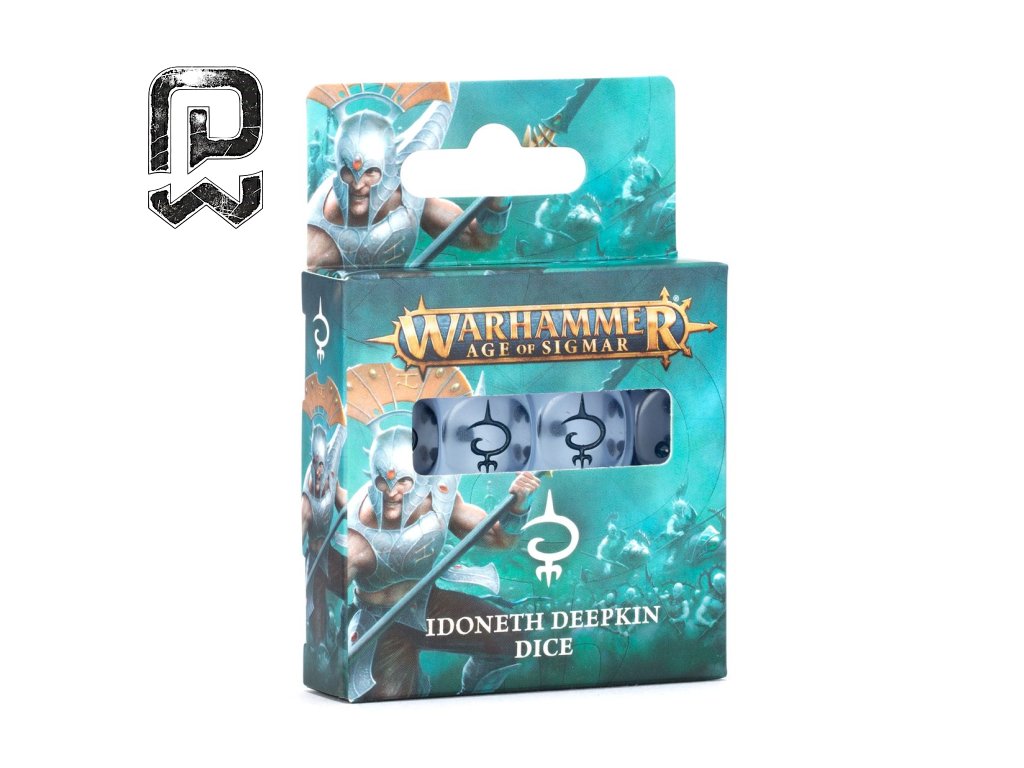 Sada obsahuje 16 šestistěnných kostek o velikosti 16 mm. Kostky jsou vyrobeny z matného modrého akrylového plastu s tmavě modrým inkoustem. Strany 1–5 jsou označeny klasickými tečkami, zatímco strana 6 nese ikonický symbol Idoneth Deepkin. Kompatibilní s hrami Warhammer Age of Sigmar.