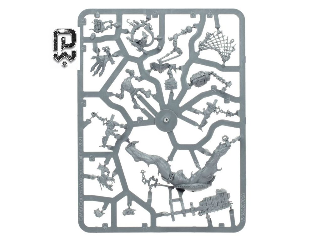 | Miniatury / figurky | 43 dílků pro sestavení jednoho Marshcrawla Sloggotha s posádkou grotů |