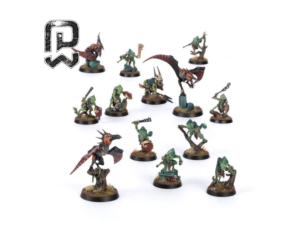 | Miniatury / figurky | 31 miniatur – Jaws of Itzl (4), Spawn of Chotec + 3 Skink handlers, Hunters of Huanchi (13), Saurus Warriors (10) |