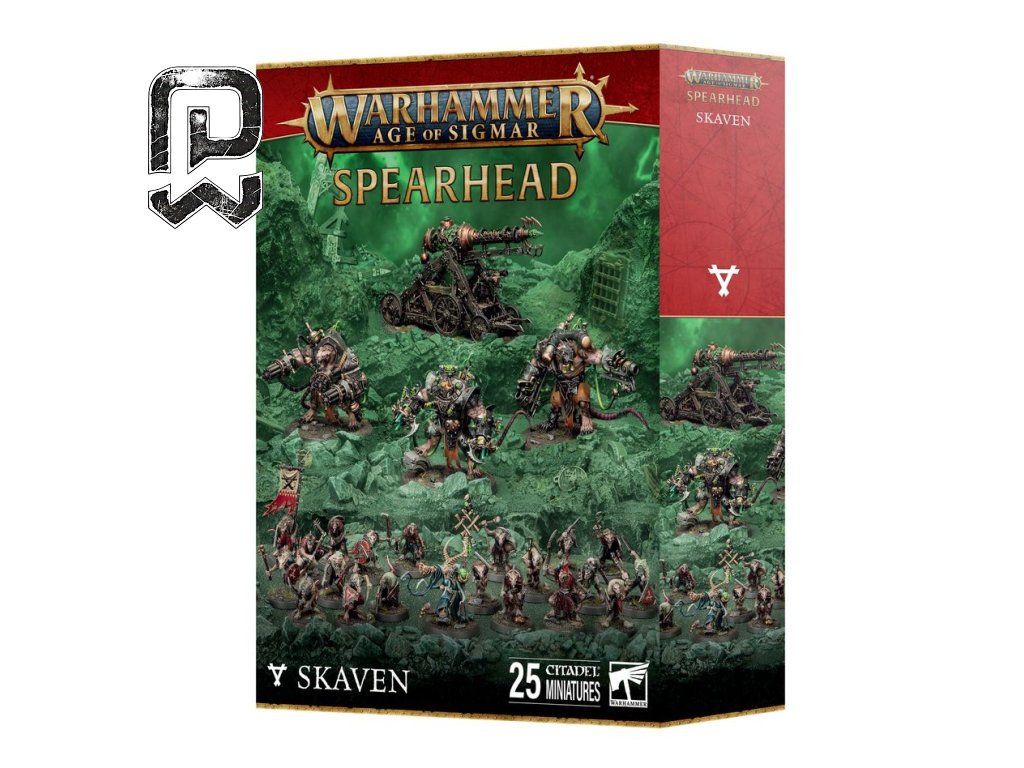 Tato krabice představuje kompletní Spearhead armádu Skavenů, vydanou v roce 2024. Obsahuje kombinaci hordových jednotek, mocného kouzelníka, brutálních Stormfiendů a ničivého Warp Lightning Cannonu. Je ideální pro začátečníky i zkušené hráče, kteří chtějí rozšířit svou armádu.