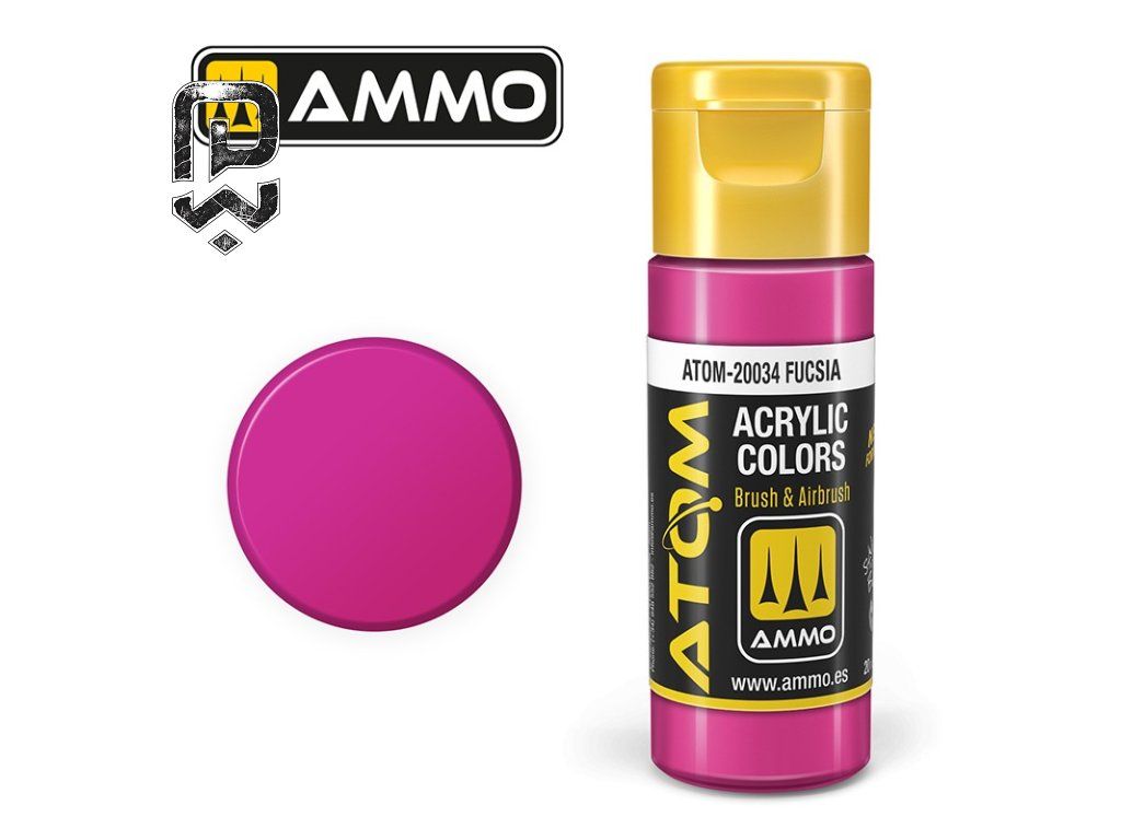 ATOM COLOR Fucsia je akrylová modelářská barva vhodná pro barvení figurek, detailů, fantasy modelů a kreativních projektů. Nabízí vysokou pigmentaci, rychlé schnutí a rovnoměrný matný povrch.