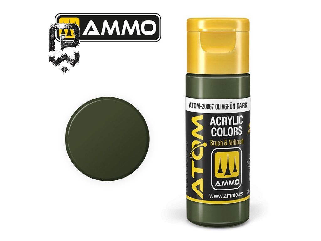 ATOM COLOR Olivgrün Dark (FS34096) je akrylová modelářská barva řady ATOM Color vhodný pro vojenské modely, zejména obrněná technika, moderní i historická vozidla v kamuflážích. realistický tmavý olivově zelený odstín, výborné krytí, matný finiš, snadná aplikace. základní nástřik kamufláže, airbrush ve slabých vrstvách, detailní štětcová práce na vybavení a doplňcích.