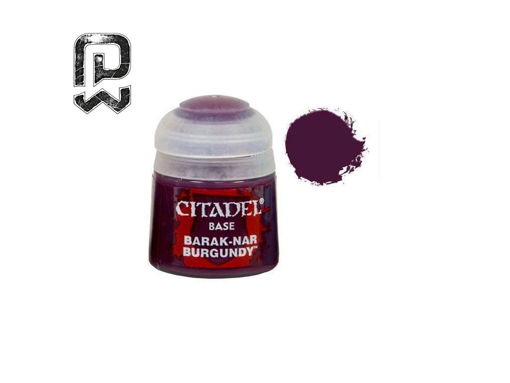 Citadel Base: Barak-Nar Burgundy je hustá základní akrylová barva vhodná pro rychlé a rovnoměrné pokrytí modelu jedním až dvěma tahy. Nabízí výbornou pigmentaci, hluboký vínový tón a snadné míchání s dalšími odstíny.
