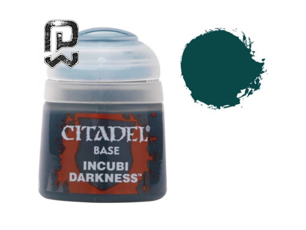 Citadel Base: Incubi Darkness je akrylová základová barva vhodná pro rychlé základní nátěry miniatur v hlubokém teal odstínu. Nabízí velmi silnou pigmentaci, výborné krytí a hladkou aplikaci – ideální volba pro modeláře, kteří chtějí jednotnou a dobře vrstvitelnou základní barvu.