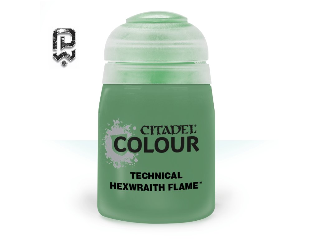 Hexwraith Flame z řady Citadel Contrast je velmi výrazná neonově zelená barva, která samovolně stéká do prohlubní a zanechává zářivý odstín na vystouplých detailech. Ideální volba pro duchy, magické plameny a nadpřirozené efekty.
