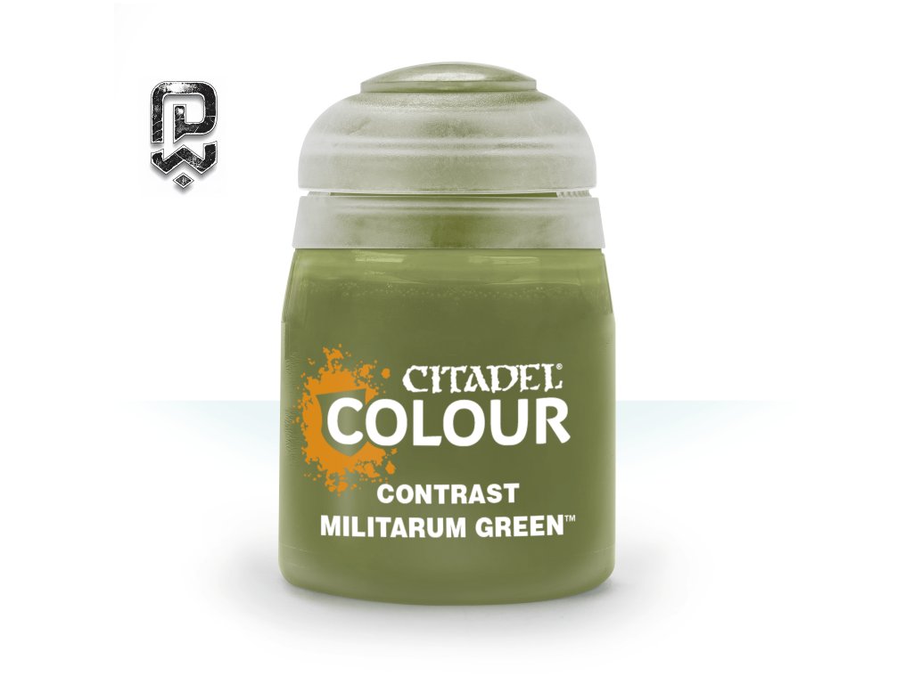 Citadel Contrast: Militarum Green je kontrastní akrylová barva určená pro uniformy, vojenské zbroje, techniku, výstroj a přírodní povrchy. V jednom kroku vytváří základní barvu i přirozené stínování.