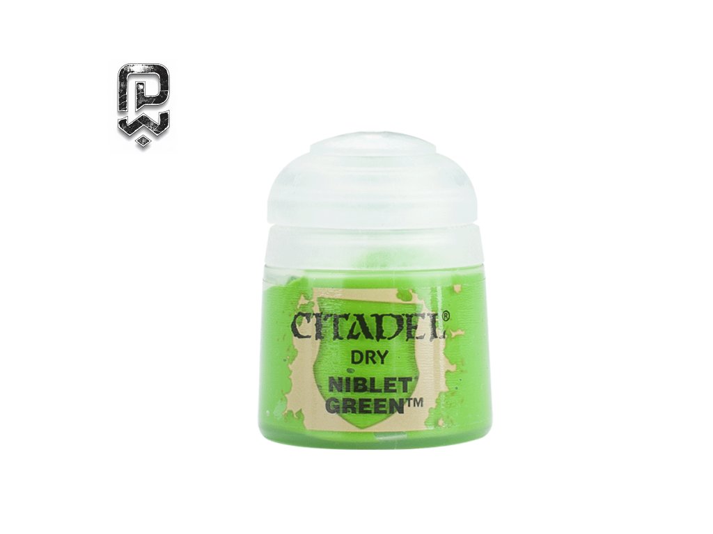 Citadel Dry: NIBLET GREEN je suchá akrylová barva vhodná pro drybrush techniku. Ideální pro zvýraznění hran, textur a vystouplých detailů na zelených zbrojích, kůži, přírodních prvcích, mutacích a organických površích.