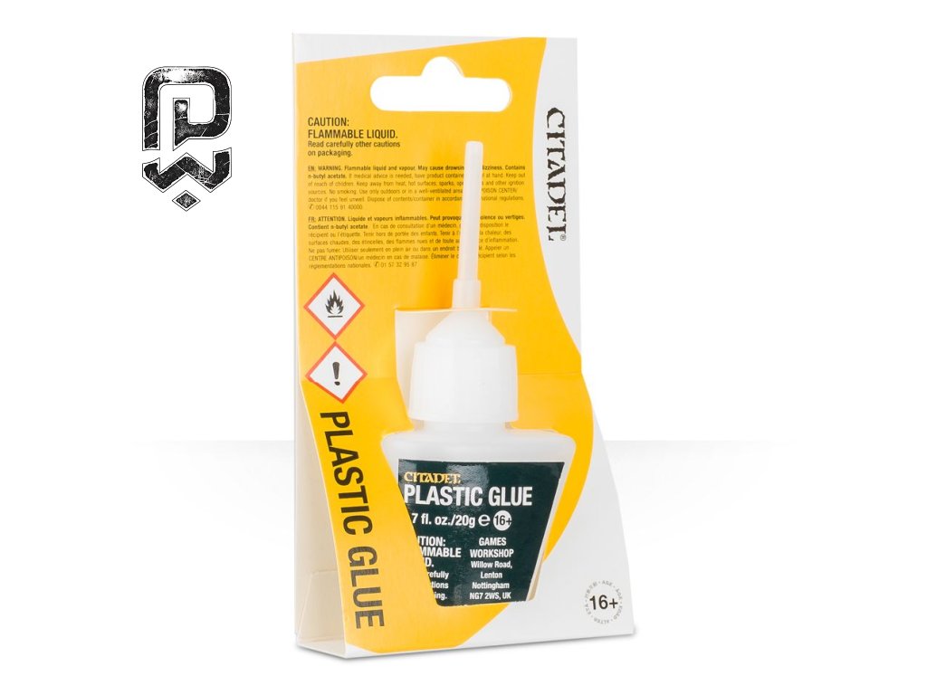 miniatures - Barvy a příslušenství - Plastic Glue je lepidlo na plast (plastic cement) pro stavitele plastových miniatur (Warhammer 40,000, Age of Sigmar a další). Hodí se na lepení plastových dílů ze sprue a sestavení miniatur do pevného celku a pomůže ti stavět rychleji, přesněji a s menším množstvím viditelných spár po slepení.