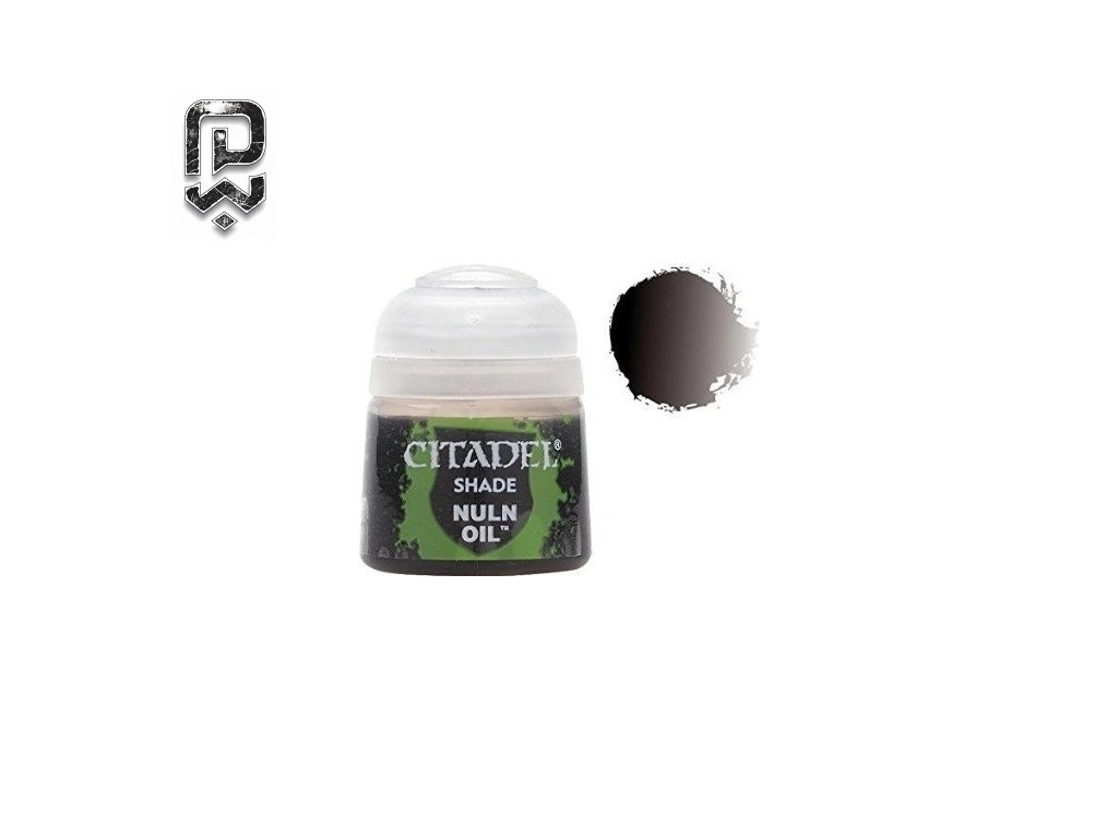 Citadel Shade: Nuln Oil je stínovací barva vhodná pro tmavé stínování kovů, mechanických částí, zbrojí i organických povrchů. Díky tekuté konzistenci samovolně zateče do prohlubní a zvýrazní jemné detaily.