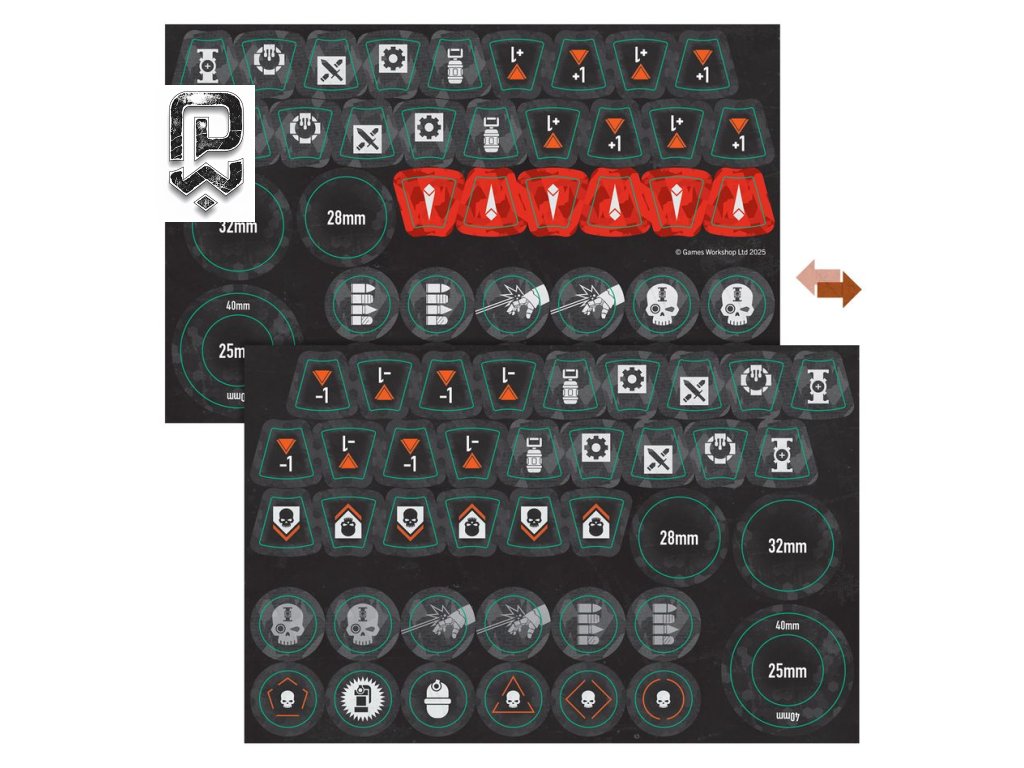 | Žetony | 39 oboustranných Deathwatch žetonů |
