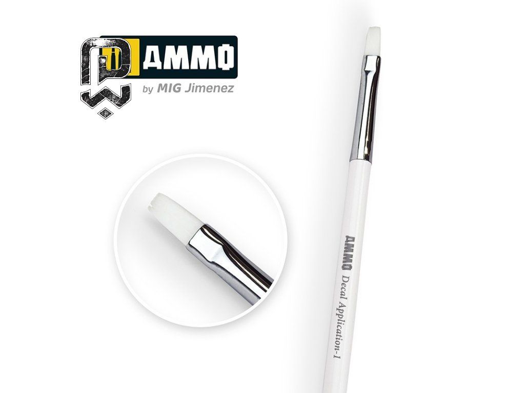 AMMO Decal Application Brush is a decal application brush suitable for precise placement of decals without damage. soft bristles guide decals without tearing, precise control even on small details, no unwanted shifting during placement. placing decals without bubbles, smoothing over panel lines, adjusting position exactly on the first try.