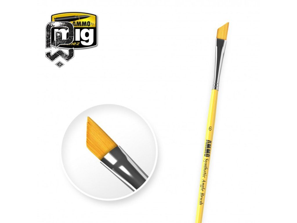 6 Synthetic Angle Brush is a Angled synthetic detail brush size 6 for precision hobby painting suitable for Controlled painting of edges, panel lines, and tight corners where standard round brushes struggle to reach without overspill. Angled synthetic bristles for maximum control, stable tip shape even after repeated use, smooth paint flow without streaking or flooding, precise edge-guided application. Highlighting armor edges, painting aircraft panel lines, weathering in recessed areas, detailing cockpit frames, working around rivets without touching surrounding surfaces.