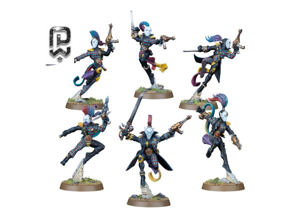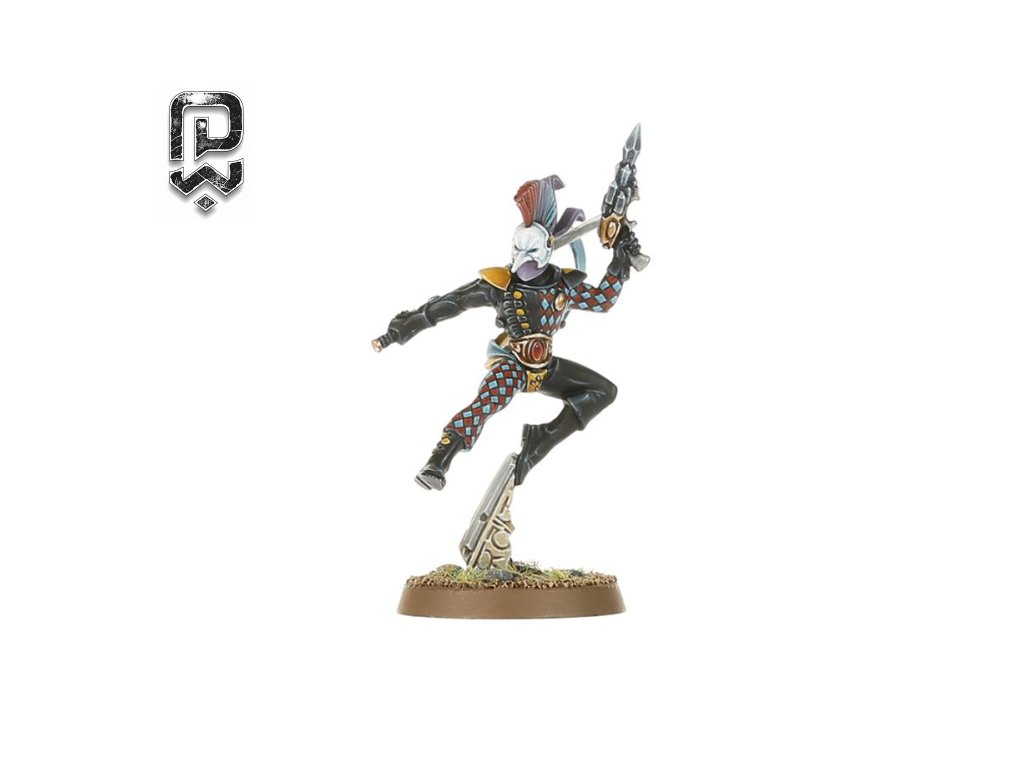 The Harlequin Troupe represents the core combat unit of the Harlequin faction. They are acrobats who combine speed, elegance, and deadly weaponry. Each model can be customized thanks to a wide selection of masks, weapons, and poses.