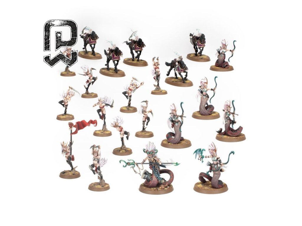 | Miniatures / Figures | 1x Melusai Ironscale, 10x Witch Aelves (alternatively Sisters of Slaughter), 5x Blood Stalkers (alternatively Blood Sisters), 5x Doomfire Warlocks |