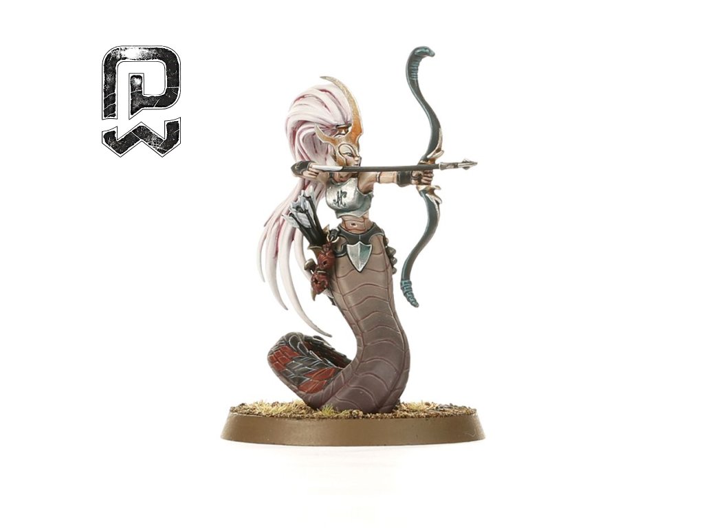 Melusai Ironscale leads her sisters into battle with cold precision and deadly force. Witch Aelves rush into combat with fanatical rage, while Doomfire Warlocks cast dark spells. Blood Stalkers then rain down deadly arrows upon the enemy from a distance.