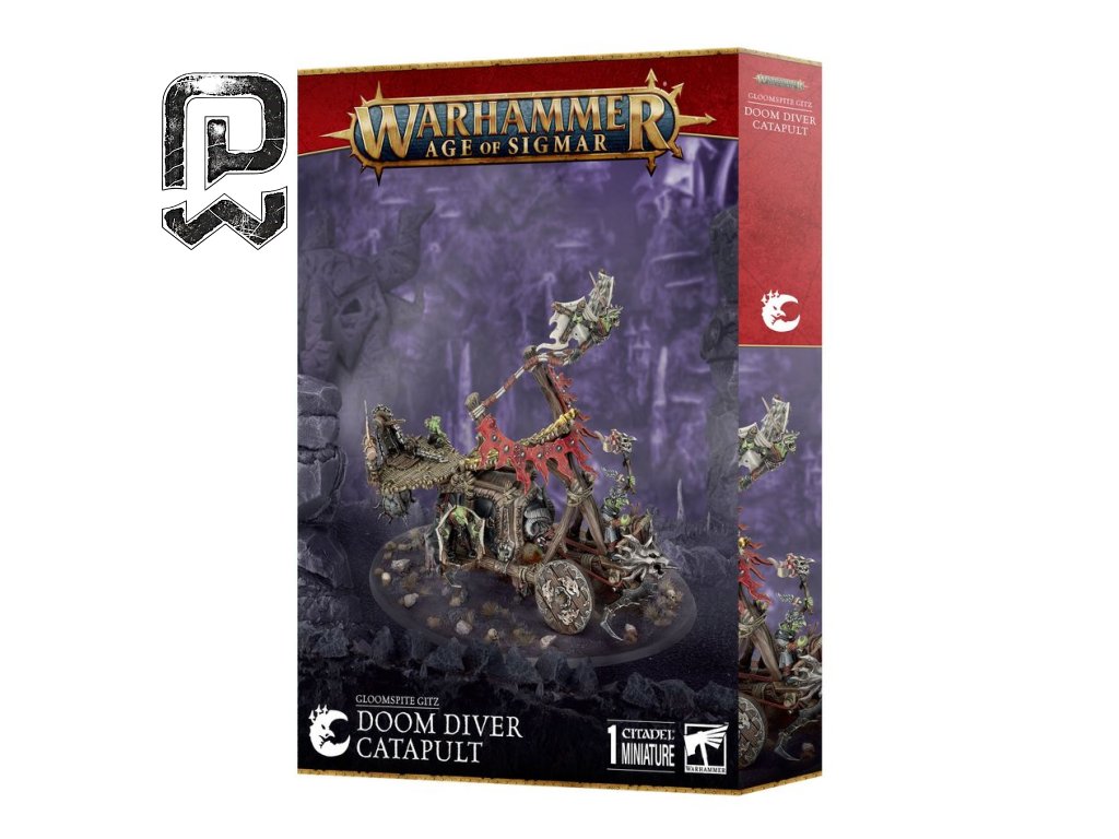 The Doom Diver Catapult is part of the game Warhammer Age of Sigmar, specifically the Gloomspite Gitz faction, which brings together mad Grots, Squigs, and other creatures from dark caves. Its purpose is to cause maximum chaos and confusion in enemy ranks.