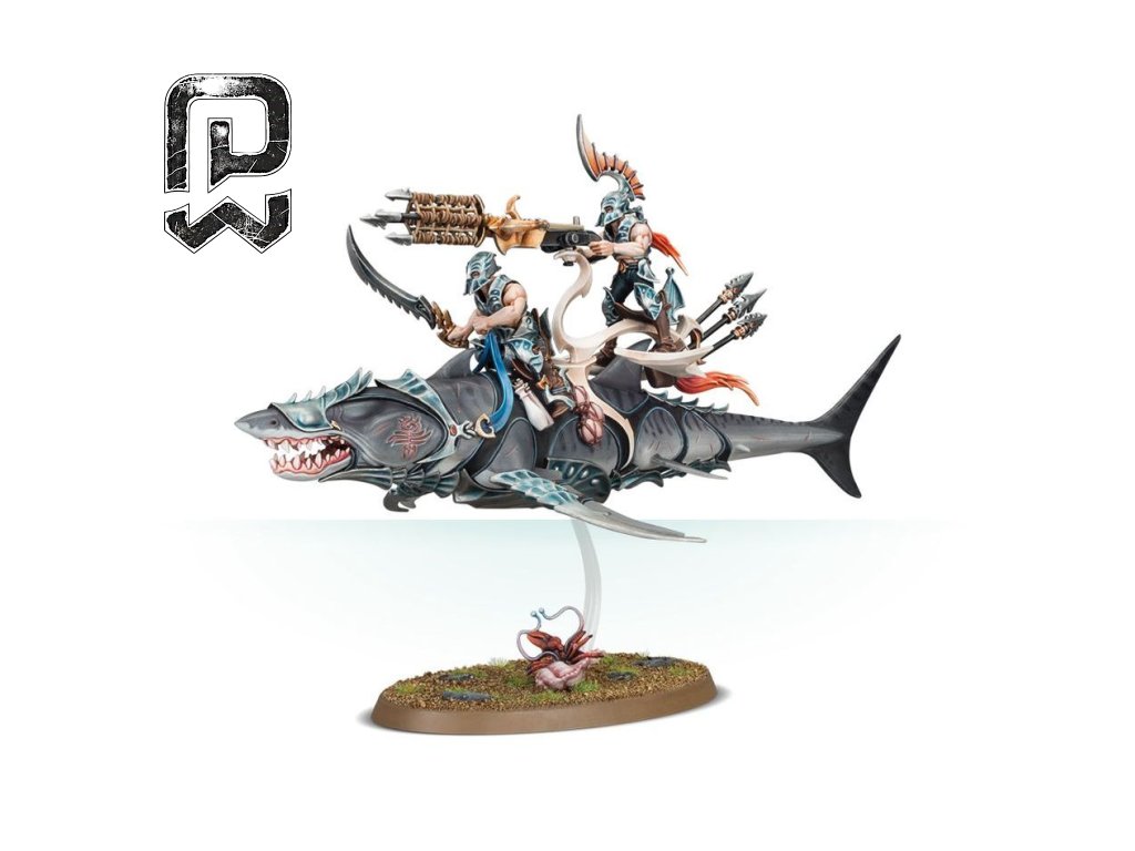 The Akhelian Allopex is an iconic Idoneth Deepkin unit that combines speed, brutality, and technology in one deadly form. Its silhouette resembles a shark, but it is equipped with weapons and a rider ready to strike the enemy from both range and up close.
