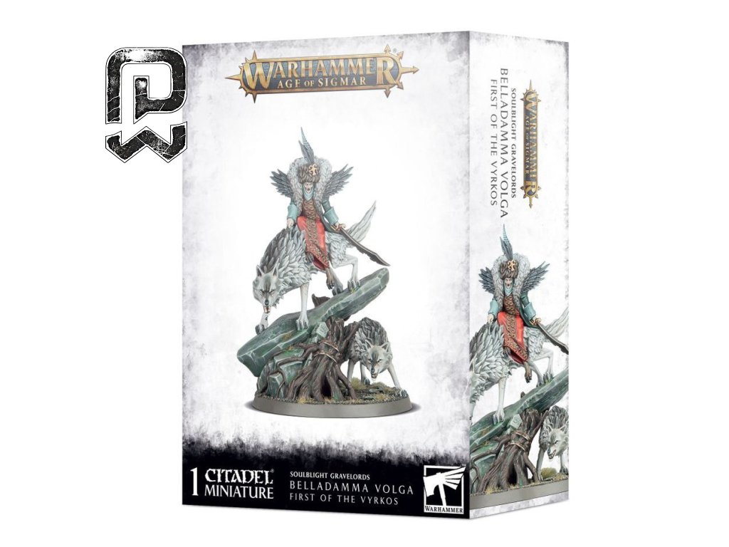 Belladamma Volga is part of the Warhammer Age of Sigmar game, specifically the Soulblight Gravelords faction, where she serves as a pack leader and a powerful sorceress.