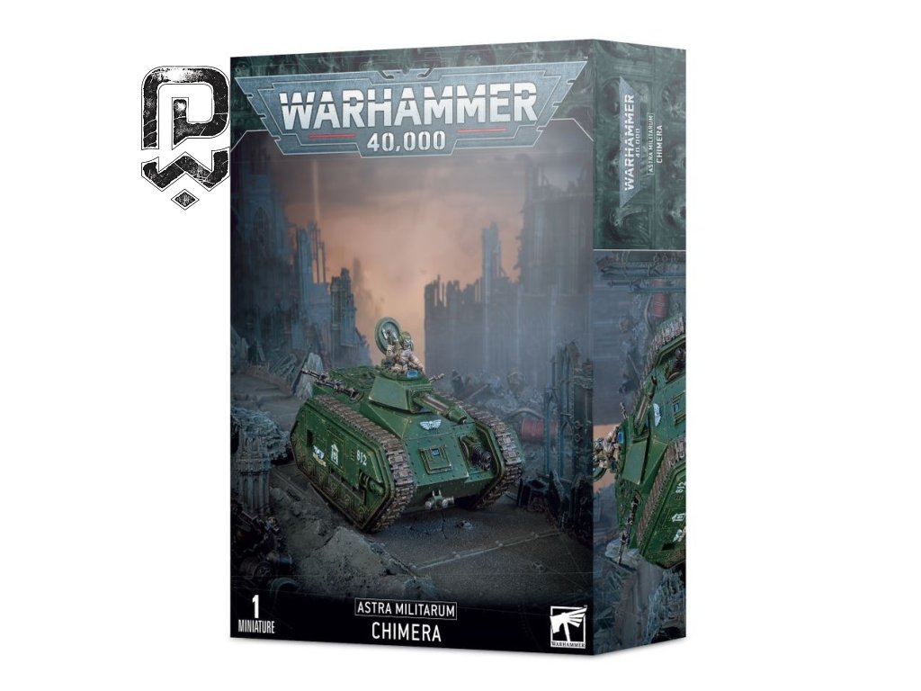 The Chimera is an armored Astra Militarum vehicle that combines mobility with firepower. Both crew and passengers can operate the built-in lasguns, while the turret and hull weapons provide heavy support.