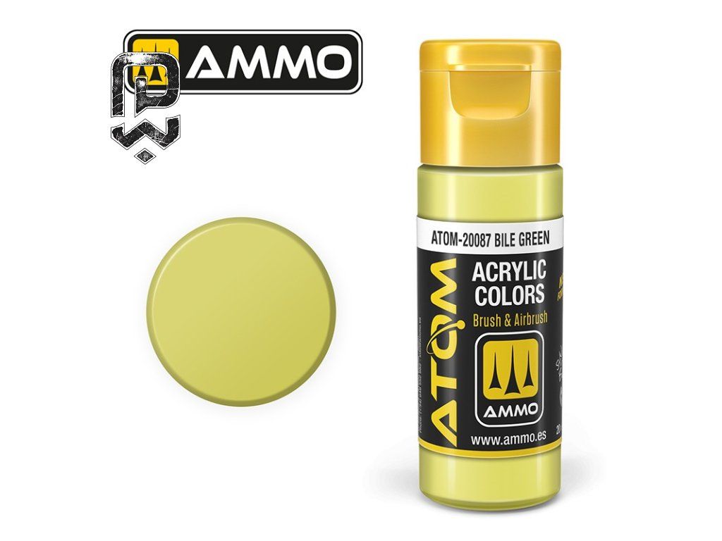 ATOM COLOR Bile Green (FS35540) is an acrylic model paint suitable for painting miniatures, fantasy elements, military vehicles, and detailed hobby projects. It matches the Federal Standard FS35540 specification and offers strong pigmentation, smooth coverage, and a matte finish.
