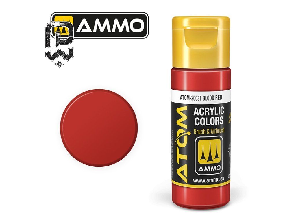 ATOM COLOR Blood Red (FS11136) is an acrylic miniature paint suitable for basecoating, highlighting details, and dramatic color accents. It provides high pigmentation, a smooth matte finish, and excellent performance with both brush and airbrush.