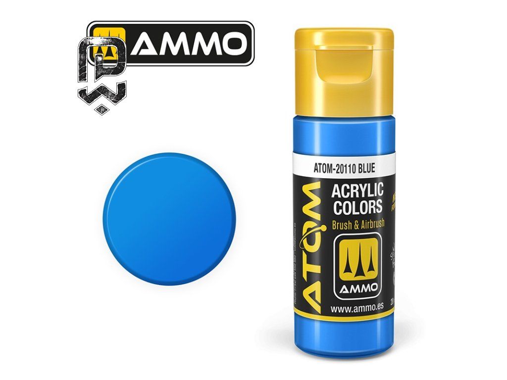 ATOM COLOR Blue is an acrylic miniature paint suitable for basecoating, shading, and highlighting details. It offers high pigmentation, a smooth matte finish, and easy application by brush or airbrush.