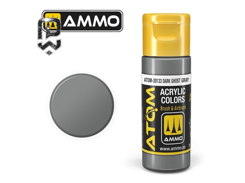 ATOM COLOR Dark Ghost Gray (FS36320) is a Acrylic model paint suitable for Painting modern military vehicles, aircraft, and realistic grey details. Fine pigment for smooth finish, high coverage, fast drying, suitable for brush and airbrush. Perfect for modern aircraft camouflage (e.g. US Navy), base coats, and panel highlighting..