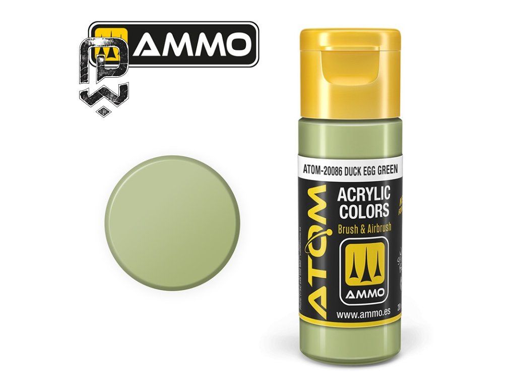 ATOM COLOR Duck Egg Green (FS34491) is an acrylic paint suitable for miniatures, historical models, and realistic surfaces. It offers strong coverage, smooth finish, and easy application.