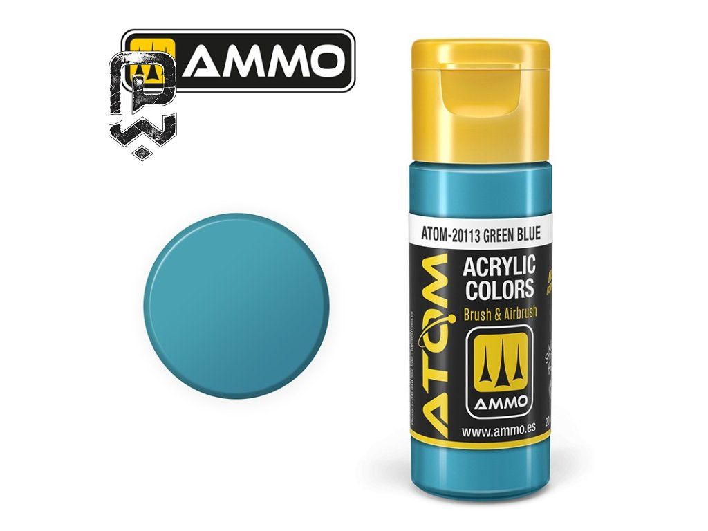 ATOM COLOR Green Blue is a acrylic model paint suitable for painting models, details, base coats and smooth transitions on plastic and resin kits. smooth satin finish, high pigmentation, easy brush and airbrush application, fast drying. perfect for sci-fi models, military vehicles, uniforms, miniature details or weathering effects..