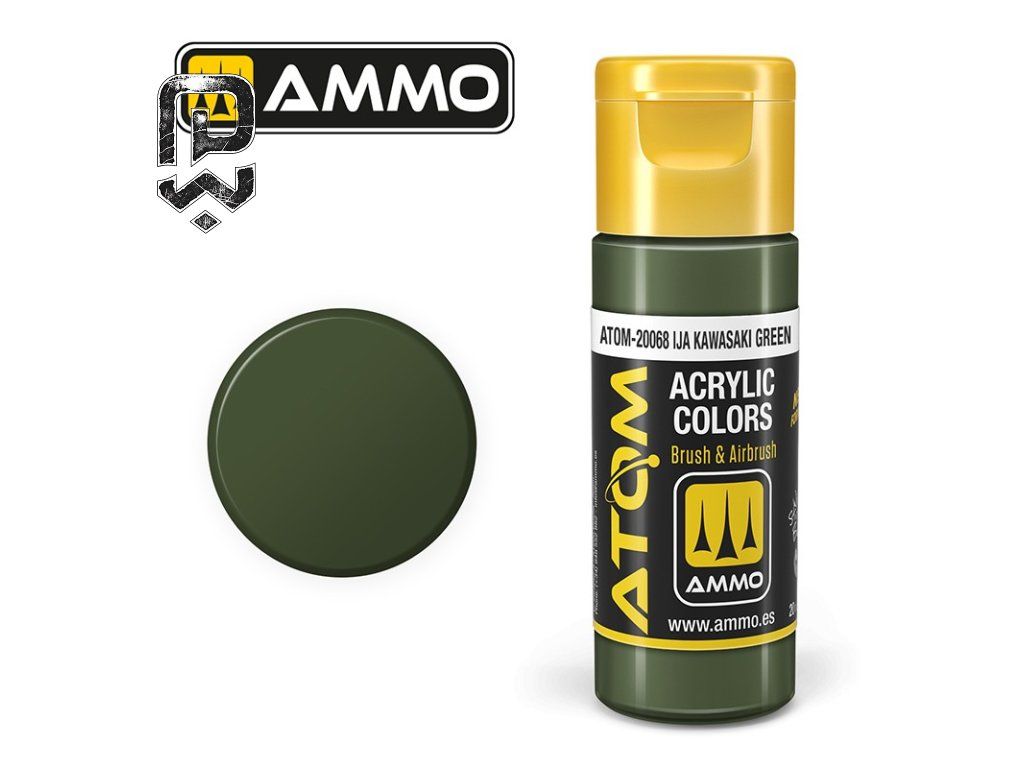 ATOM COLOR IJA Kawasaki Green is an acrylic model paint suitable for painting Japanese military aircraft, especially Kawasaki models. It offers high coverage, fine pigment, and easy application.