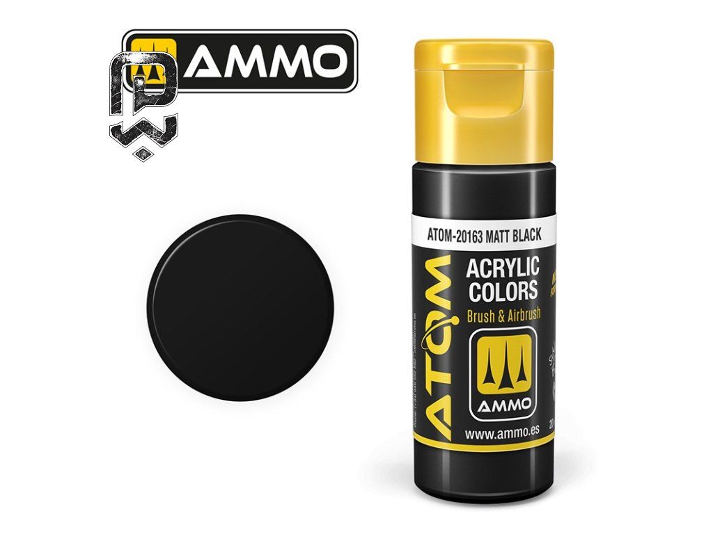 ATOM COLOR Matt Black (FS37038) is an acrylic model paint suitable for base coating, shading, and detailed work on miniatures and models. It offers smooth application, high pigmentation, and excellent coverage.