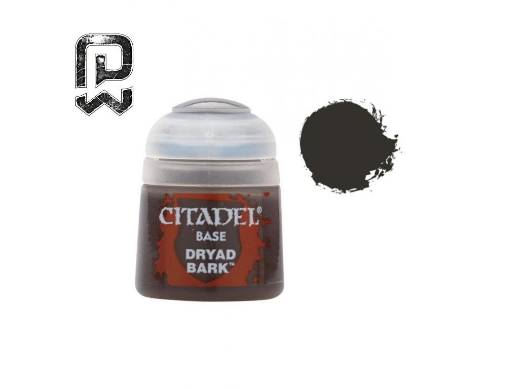 Citadel Base: Dryad Bark is an acrylic Base paint designed for dark, natural base layers. It provides strong coverage, rich pigment and smooth application.