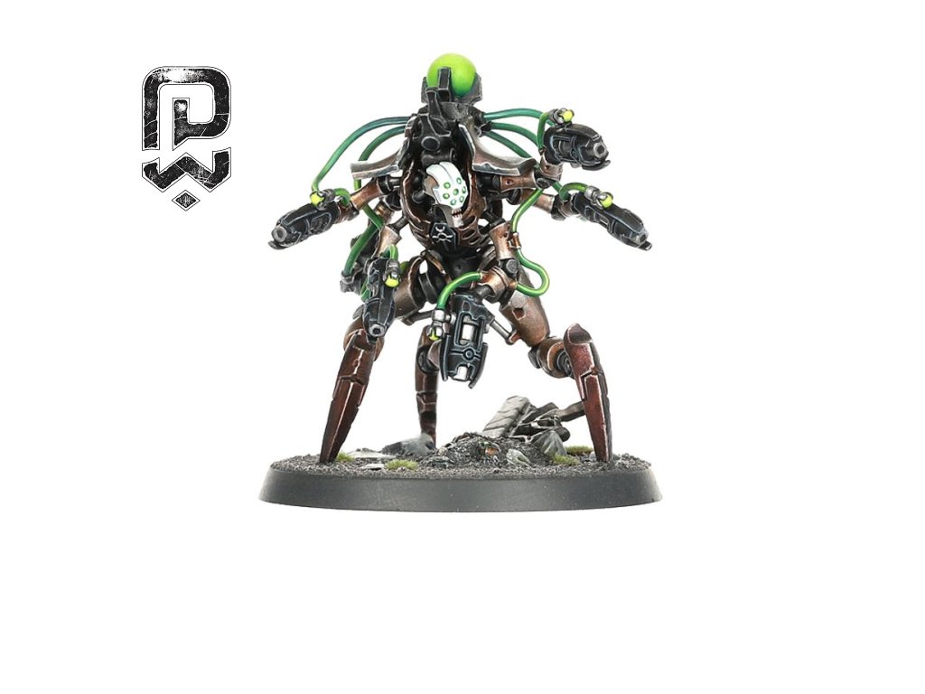 The Hexmark Destroyer is a hunched monster armed with six enmitic disintegrator pistols. Thanks to independent targeting and optimized firing patterns, it can shower enemies with an inescapable hail of shots. It is a feared short-range predator, capable of scattering entire infantry squads.