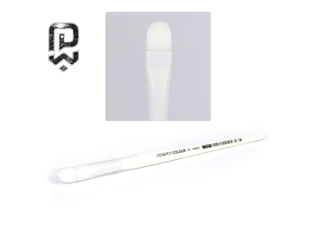This large synthetic shade brush is designed for working with thinner paints such as shades and washes when shading bigger models or terrain elements. It allows quick and even paint flow into recesses and textures, enhancing depth and detail. The synthetic bristles are durable, retain their shape, and are easy to maintain.