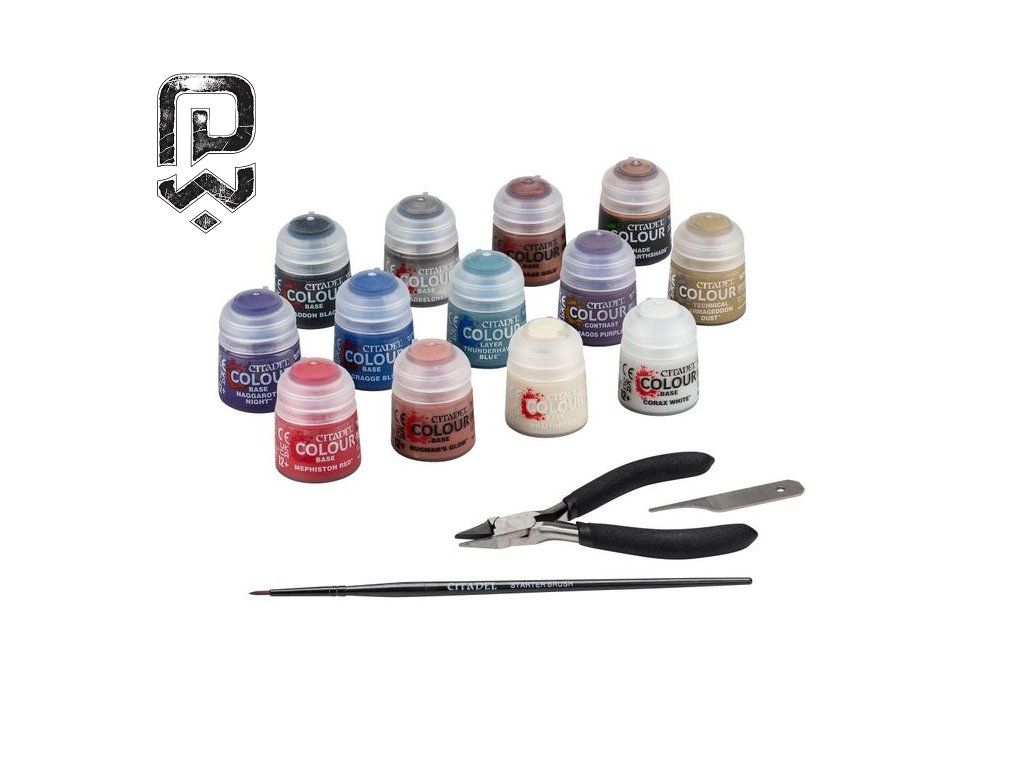 The package contains a selection of core paints, a brush, and tools that cover the first steps of the hobby. You don't have to worry about compatibility or what to buy first – everything is coordinated so you can focus on the fun of painting.