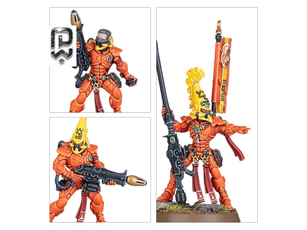 This multipart plastic kit builds five Fire Dragons – deadly flame-hurling warriors for Aeldari armies in Warhammer 40,000. These elite troops can reduce even the most heavily armoured battle tank to molten wreckage. One model can be assembled as an optional Fire Dragon Exarch, armed with a choice of weapons including a firepike, Dragon axe and Dragon fusion pistol, Dragon's breath flamer, or Exarch's Dragon fusion gun. Includes multiple head options, decorative base parts, and a Fire Dragon Aspect shrine token.