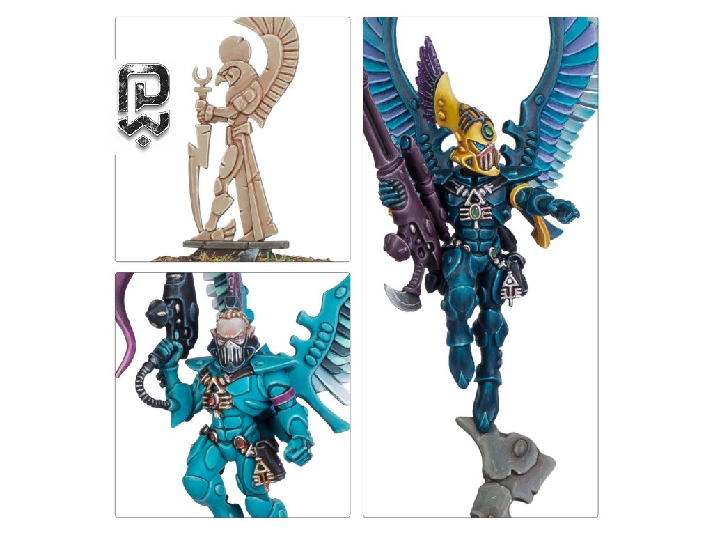 The Swooping Hawks are winged warriors representing the vengeful side of Khaine, the war god. Masters of harassment warfare, they excel at breaking up enemy counterattacks and picking off vulnerable formations.