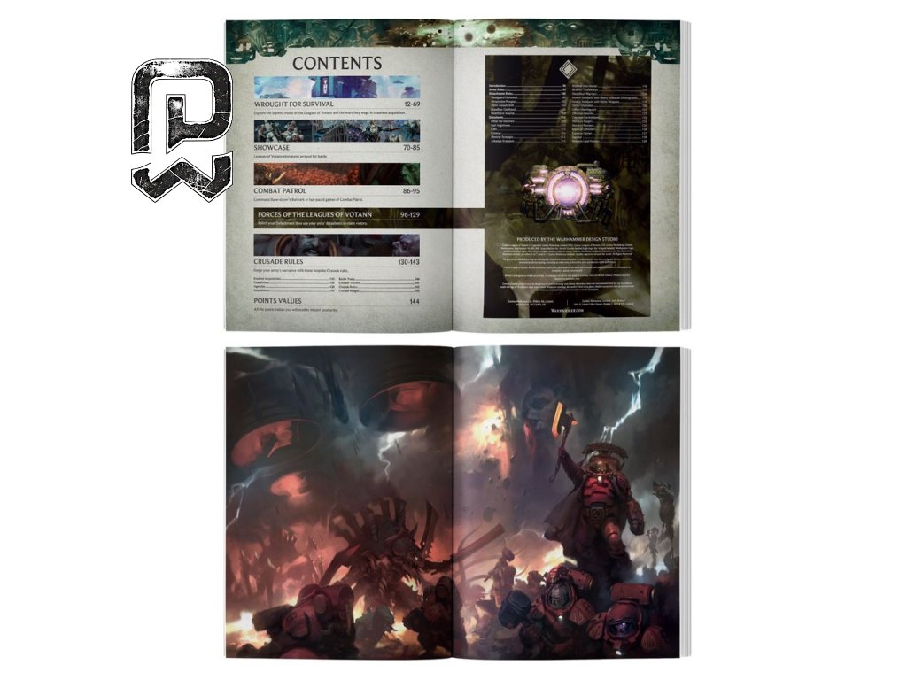 Codex: Leagues of Votann. This essential book with Warhammer 40,000 elements explores the resilient Kin and their ancient super-cogitators, the Votann. Packed with lore, rules, and stunning graphics, it's your guide to commanding the oath-bound in tactical battles across the galaxy.