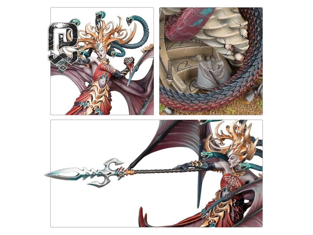 | Is it a good project for painters and collectors? | Yes, the dramatic silhouette of Morathi-Khaine, the serpentine forms, and the winged models make it a very rewarding hobby project. |