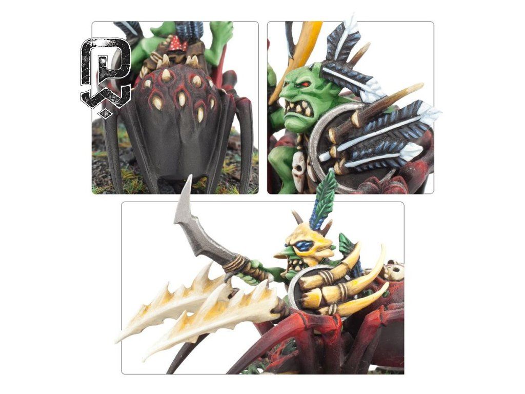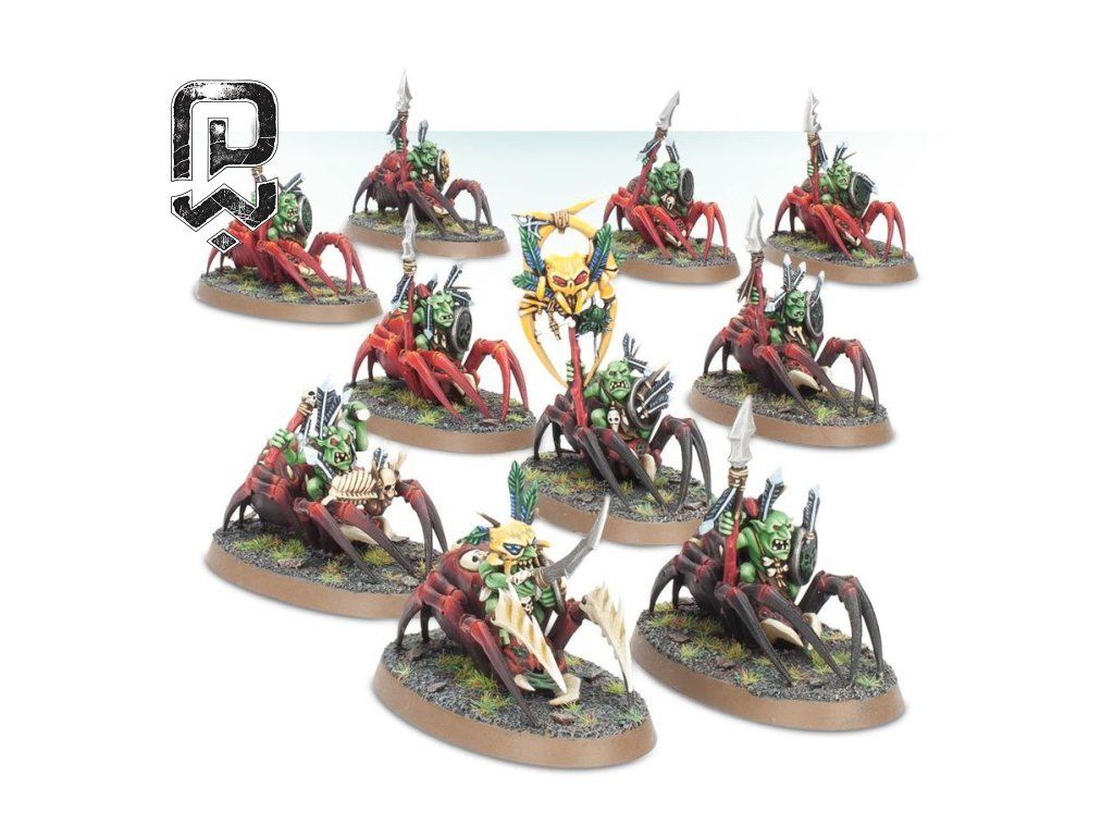 Grot Spider Riders are fast, sneaky, and impossible to ignore on the table. This unit brings mobility, flank pressure, and a strong visual theme to any Gloomspite Gitz force. They are ideal for players who enjoy unpredictable movement, board control, and the pure mischief of goblins riding giant spiders.
