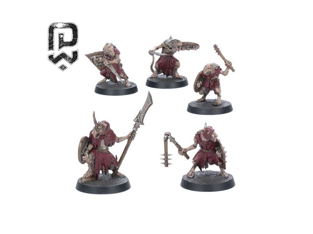 | 5× Skaven Clanrats (push-fit) | Five plastic miniatures in different poses for quick, glue-free assembly. |
