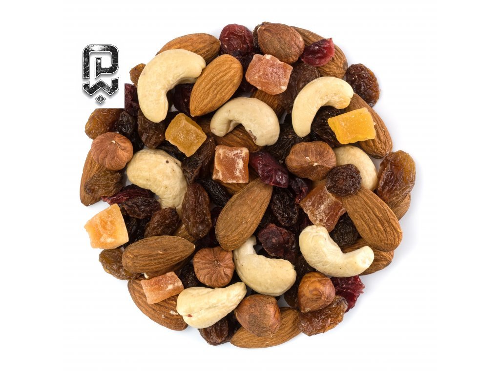 Složená z těch nejlepších ořechů jako jsou mandle, lískové ořechy, kešu ořechy, doplněná rozinkami, brusinkami a celé to završuje papaya.