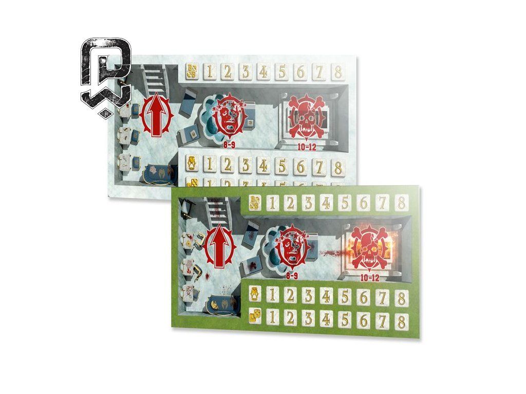 | Trackery | Vyhrazená místa pro sledování skóre, tahů a re-rollů, která zjednodušují orientaci během hry. |