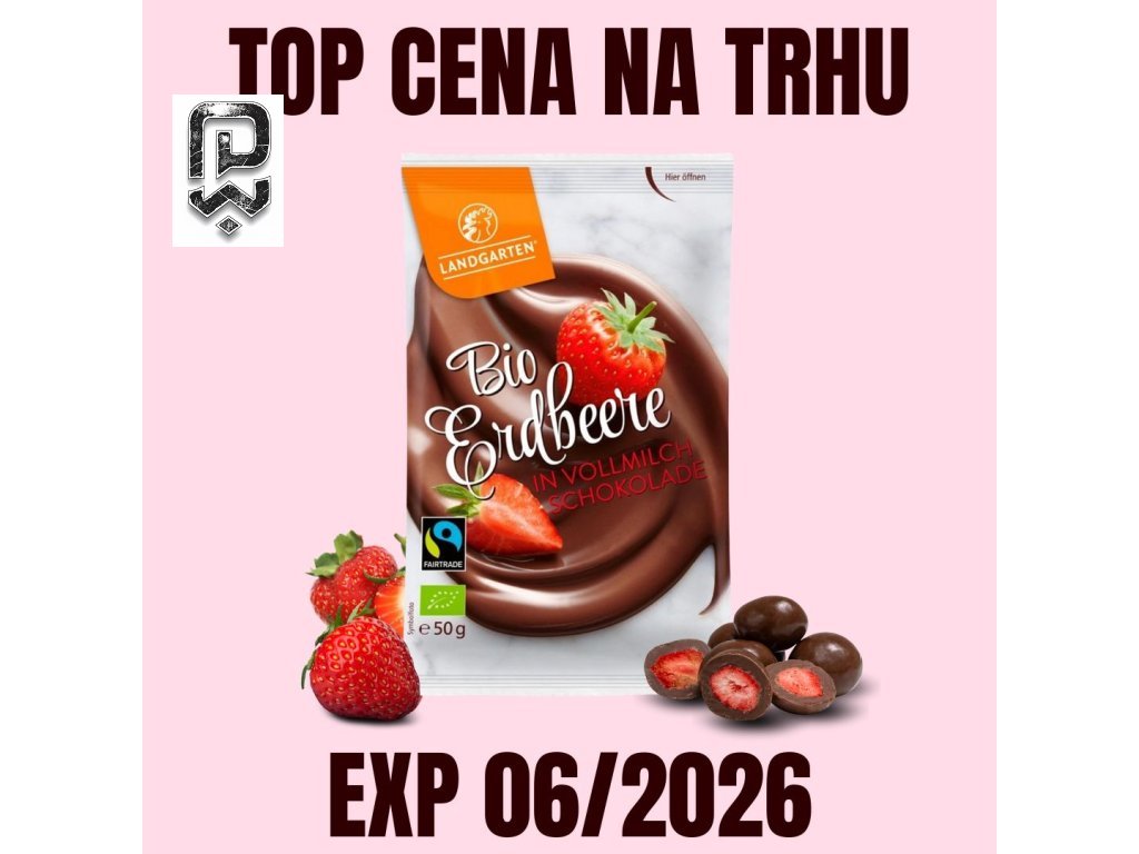 LANDGARTEN Lyofilizované jahody v mléčné čokoládě 50 g EXP 06/2026