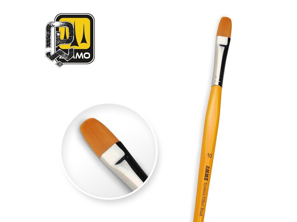 Syntetický filbert štetec veľkosti 10 s ergonomickou T-rukoväťou určený na plynulé prechody, weathering a jemné modelárske efekty bez viditeľných ťahov