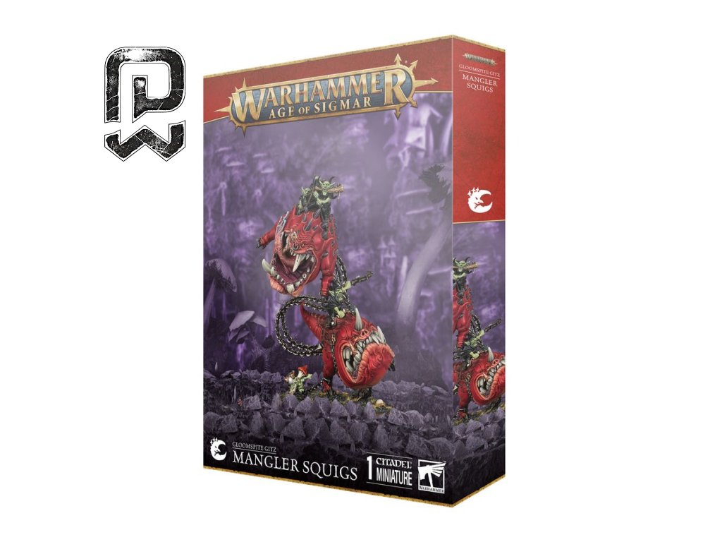 Mangler Squigs sú ikonickou jednotkou Gloomspite Gitz – dve obrie jaskynné beštie spútané reťazami, ktoré sa rútia bojovým poľom ako živé zbrane chaosu. Sú známe svojou nepredvídateľnosťou, brutálnou silou a groteskným vzhľadom.