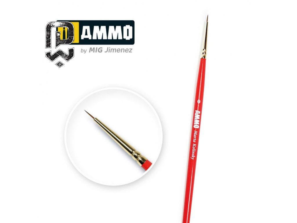 AMMO High Quality Brush je modelársky štetec vhodný na presné maľovanie detailov, vrstvenie farieb a jemné opravy bez rozliatia farby mimo plochy. ostrý hrot, ktorý drží tvar; kontrolovaný tok farby bez pretekania; pohodlná rukoväť pre stabilný úchop; plynulé ťahy bez strapkania. maľovanie očí, hrán brnenia, symbolov a jemných línií na miniaturách; presné nanášanie highlightov.